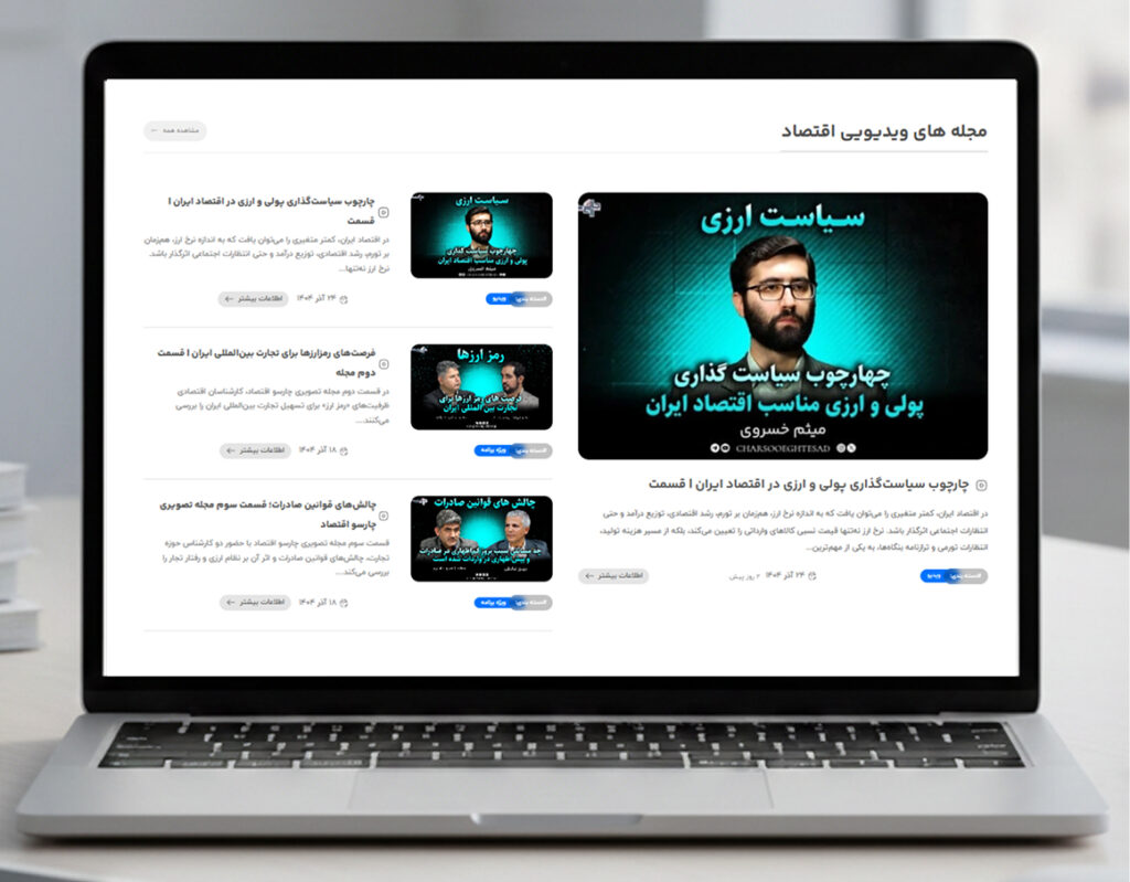 وبسایت «چارسوی اقتصاد» دارای کارتها و صفحات اختصاصی برای انواع محتواست؛ از جمله محتوای صوتی (پادکست) و محتوای تصویری. این طراحی اختصاصی باعث میشود کاربران سریعتر محتوا را پیدا کنند، راحتتر مرور کنند و تجربهی منظمتری در دسترسی به بخشهای مختلف سایت داشته باشند.