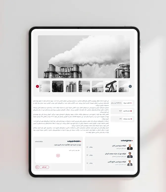 هر پروژه صفحه اختصاصی دارد که در این صفحه تمام جزییات پروژه شامل توضیحات، اسلایدر عکس ها،عوامل پروژه و …